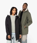 100% recycled polyester. Sherpa lined body. 210T taffeta padded lined hood and sleeves. Waterproof 400mm with heat sealed seams. Breathable 3000g. Three panel hood with drawcord and recycled inner stoppers. Full length recycled waterproof zip with recycled metal zip pull. Inner pocket. Inner personalisation patch. Two front pockets with reverse zip. Elasticated cuffs. Tag free. Zip access for decoration. Recycled polyester is made from post-consumer waste.