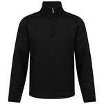Tech bonded fabric, water repellent outer. Quick dry antibacterial coating. Brushed inner fleece. 1/4 zip neck, dropped tail and bound cuffs.