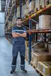 Workpant with open side pockets and back pockets with extra widht, left side with flap and magnetic closure. Pre-bent knees, stretch fabric in croatch and sewn-in stretch band in the waist for increased comfort. Leg pockets, on left side pocket with flap and magnet closure, internal phone pocket and bracket for ID-card. On the right side pocket for folding rule and pocket for tools with knife button. Knee protection pockets, opening from the outside with zipper. Wider belt loop at the back to prevent pressure from belt. Hidden button at front. Reinforcement in the folding rule pocket, back pockets and over knees for increased durability. Tested for industrial washing according to ISO 15797 Increased visibility EN 17353 Supplied in a bio-based, compostable bag